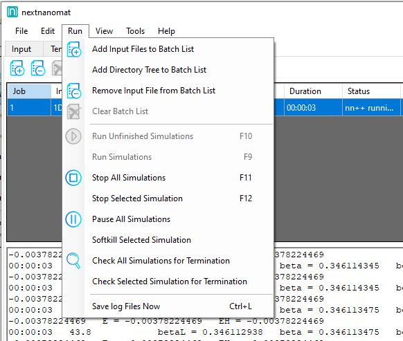 Figure 1.3.4 Run main menu functions