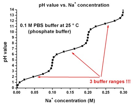 The following figure shows the pH value as a functions of the Na+