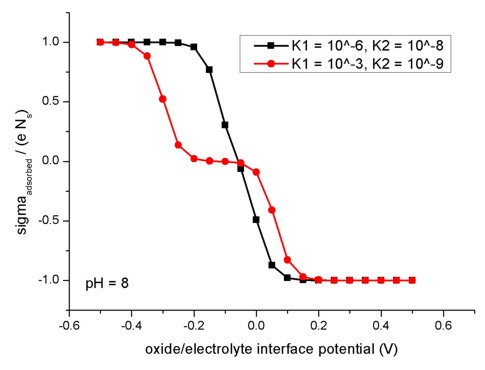 The surface ionization that occurs at the oxide/electrolyte interface yields