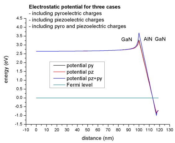 The figure shows the Fermi level (at 0 eV), the electrostatic potential and the