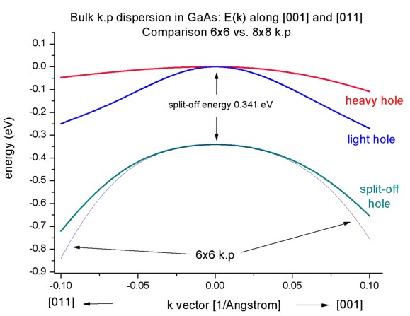 - If one zooms into the holes and compares 6-band vs. 8-band k.p, one can