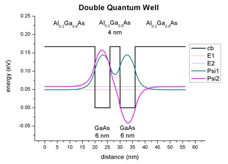 Double Quantum Well: AlGaAs / 6 nm GaAs / ... nm AlGaAs / 6 nm GaAs /