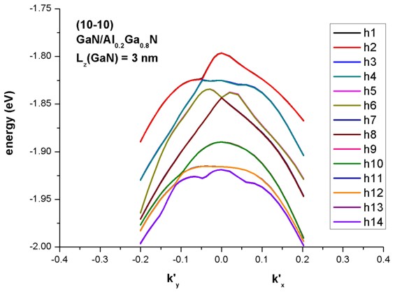 of the (10-10)-oriented GaN/AlGaN QW for k|| = 0. In agreement with the paper