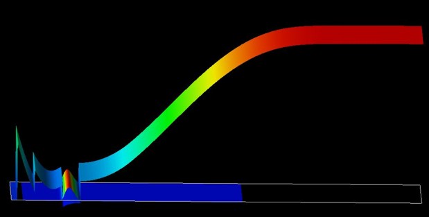 wave function (probability density psi²) of the same structure in a 2D simulation