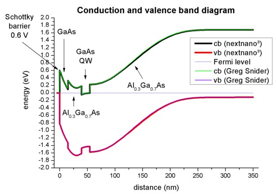 Both codes, nextnano³ and Greg Snider's "1D Poisson" lead to the same