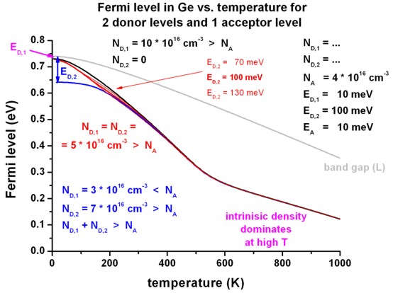 The ionization energy of the lower donor level ED,2 is set to 100 meV.