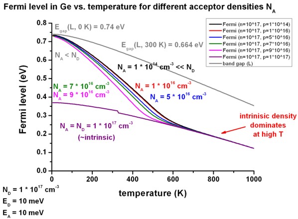 The acceptor concentration is NA = 4 * 1016 cm-3.