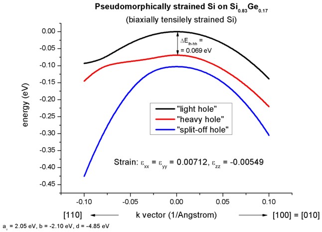 Si but it could be any strained alloy. In the latter case, the k.p