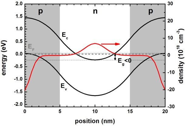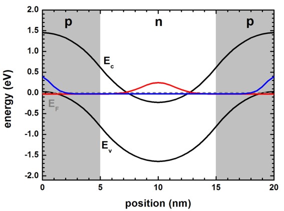 - p-type region: 0 nm - 5 nm and 15 nm to 20 nm