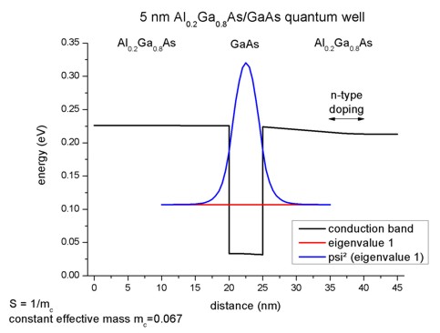 Psi²) for a 5 nm AlAs/GaAs quantum well.