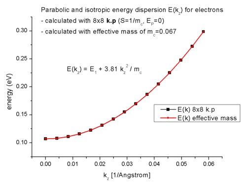 dispersion for the effective-mass approximation agrees perfectly to the 8-band