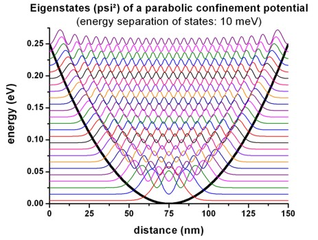 We illustrate this by a 1D simulation along the y direction: This figure shows the eigenstates of the parabolic confinement potential.