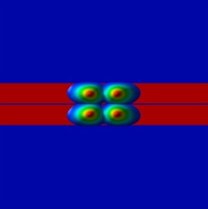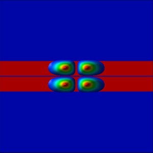 Along the x direction (perpendicular to the simulation plane), we will apply a magnetic field to study the energy spectrum of the coupled quantum wires as a function of longitudinal magnetic field.