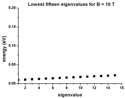 - The following figure shows the lowest fifteen eigenvalues for a magnetic