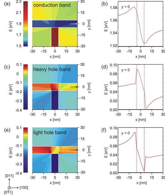 (valence) band edge energy in GaAs at the T-shaped intersection.
