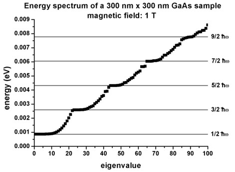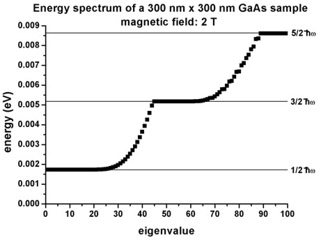 We calculate the eigenstates for different magnetic field strengths (1 T, 2 T,