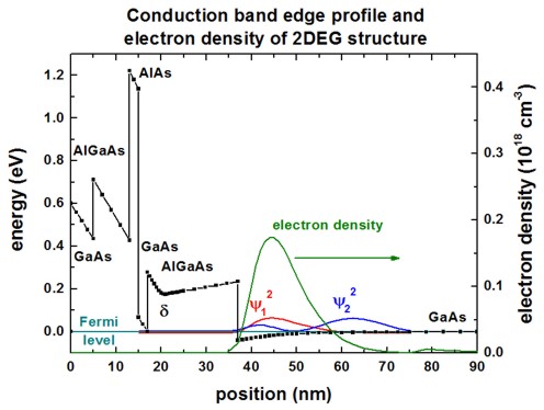 The following figure shows the calculated conduction band edge and the electron